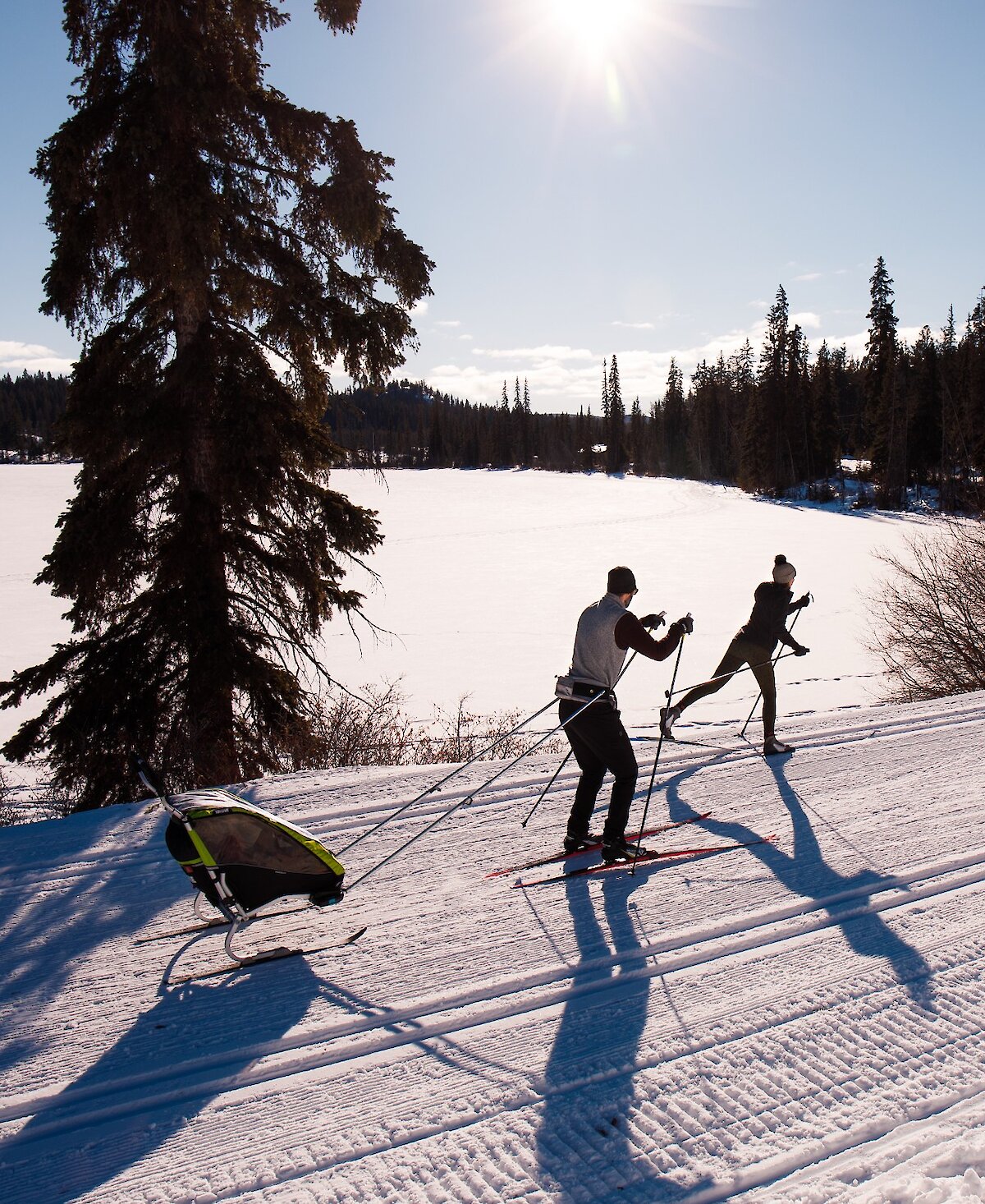 Glide through the groomed tracks at Overlander Ski Club at Stake Lake, the scenic routes at Harper Mountain, or the extensive Nordic network at Sun Peaks Resort
